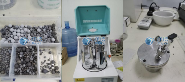 1、準(zhǔn)備行星式球磨機(jī)JX-2G一臺(tái)、研磨罐1套、混合不銹鋼研磨珠以及所需橄欖巖樣品少許;